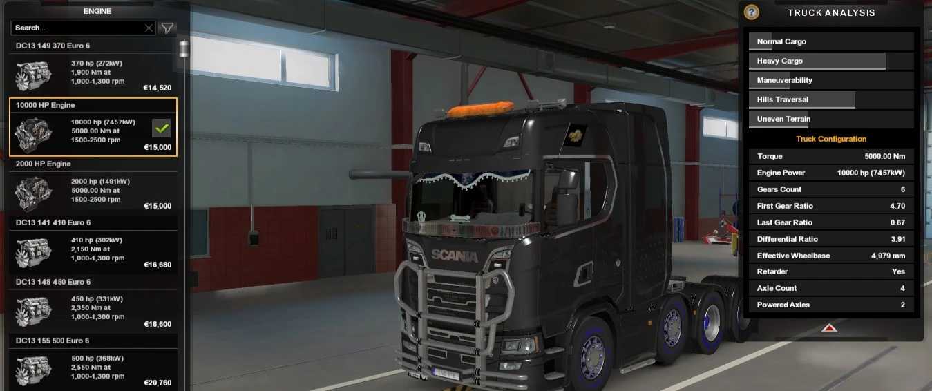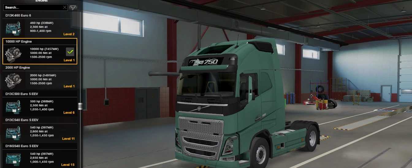 Dieser Mod enthält einen 10.000-PS-Motor für alle Lkw.