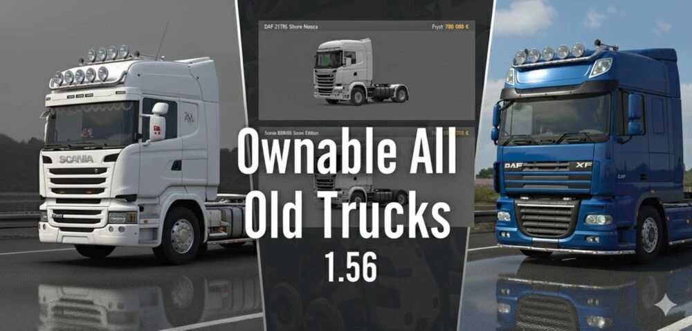 Tags: ETS2 Alte Trucks, Eigene Trucks, Classic Truck Mod, Kaufbare Trucks, Mod Dealer, ETS2 1.56, Old Truck Pack, Euro Truck Simulator 2, Vintage Truck, Standalone Mod, Dealer Unlock