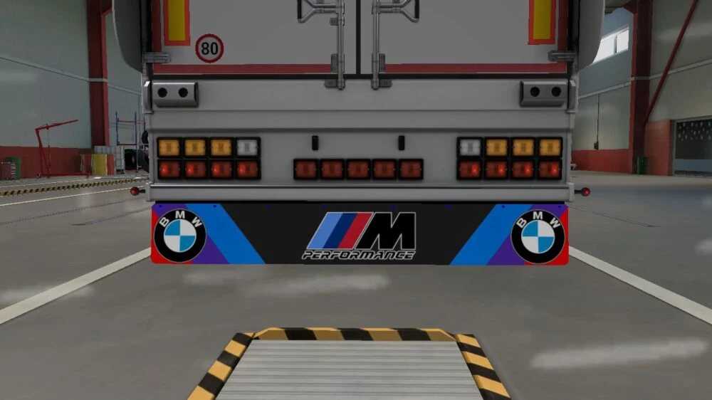 Diese Modifikation beinhaltet eine BMW-Anhängerlackierung und Schmutzfänger.