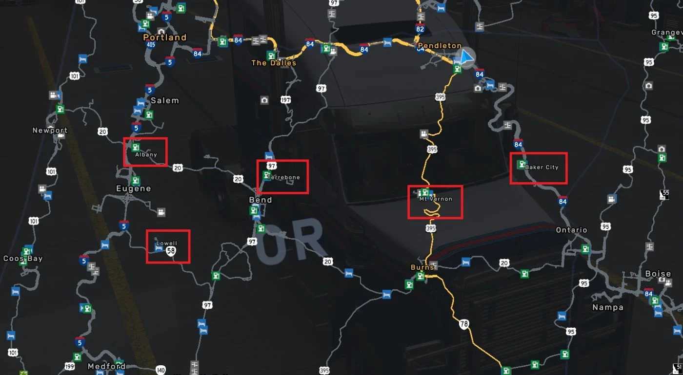 Discover Oregon ermöglicht den Zugang zu Gebieten, die nicht von SCS definiert wurden, und fügt einige neue Straßen und Unternehmen hinzu.