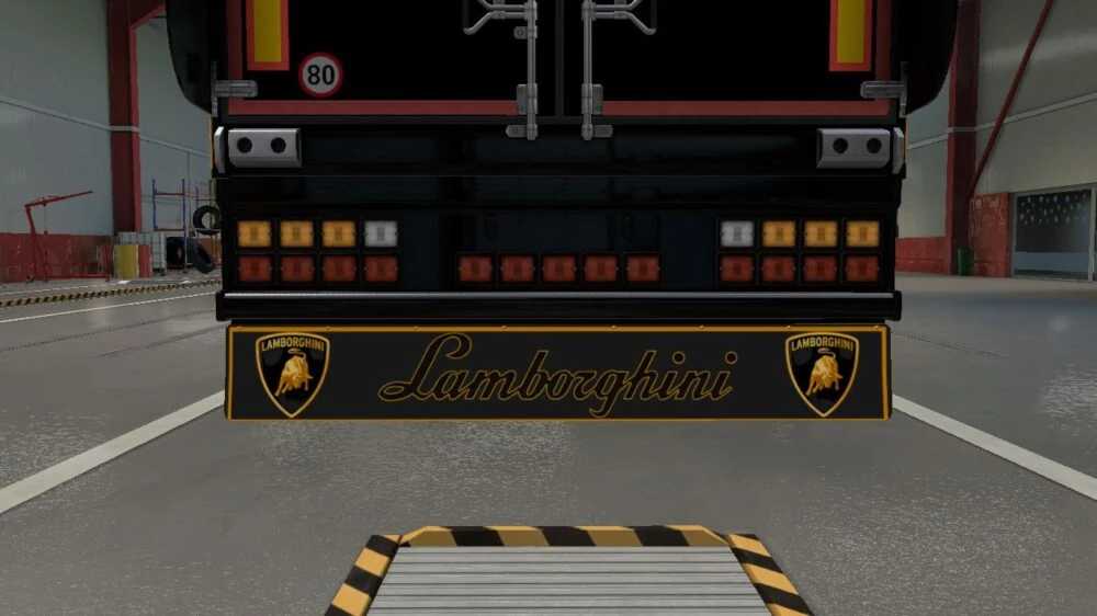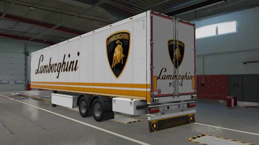 Lamborghini-Lackierung & Schmutzfänger für SCS-Kastenanhänger v2.0 ETS2