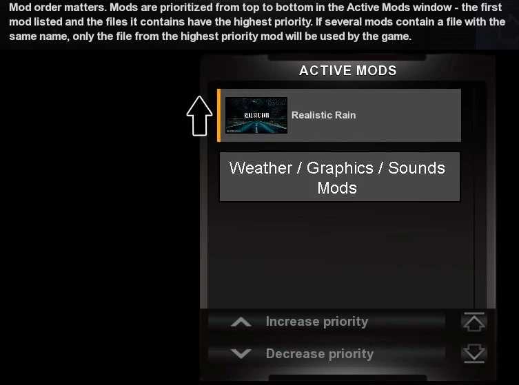 Muss im Mod Manager hohe Priorität haben. Realistischer Regen ÜBER/AUF Wetter/Grafiken,