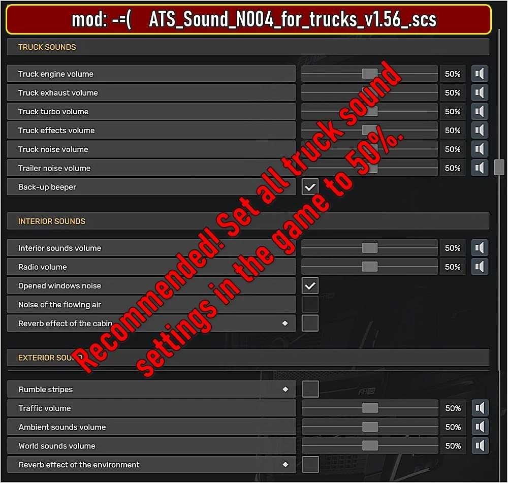 Empfohlen! Stellen Sie alle LKW-Soundeinstellungen im Spiel auf 50 % ein.